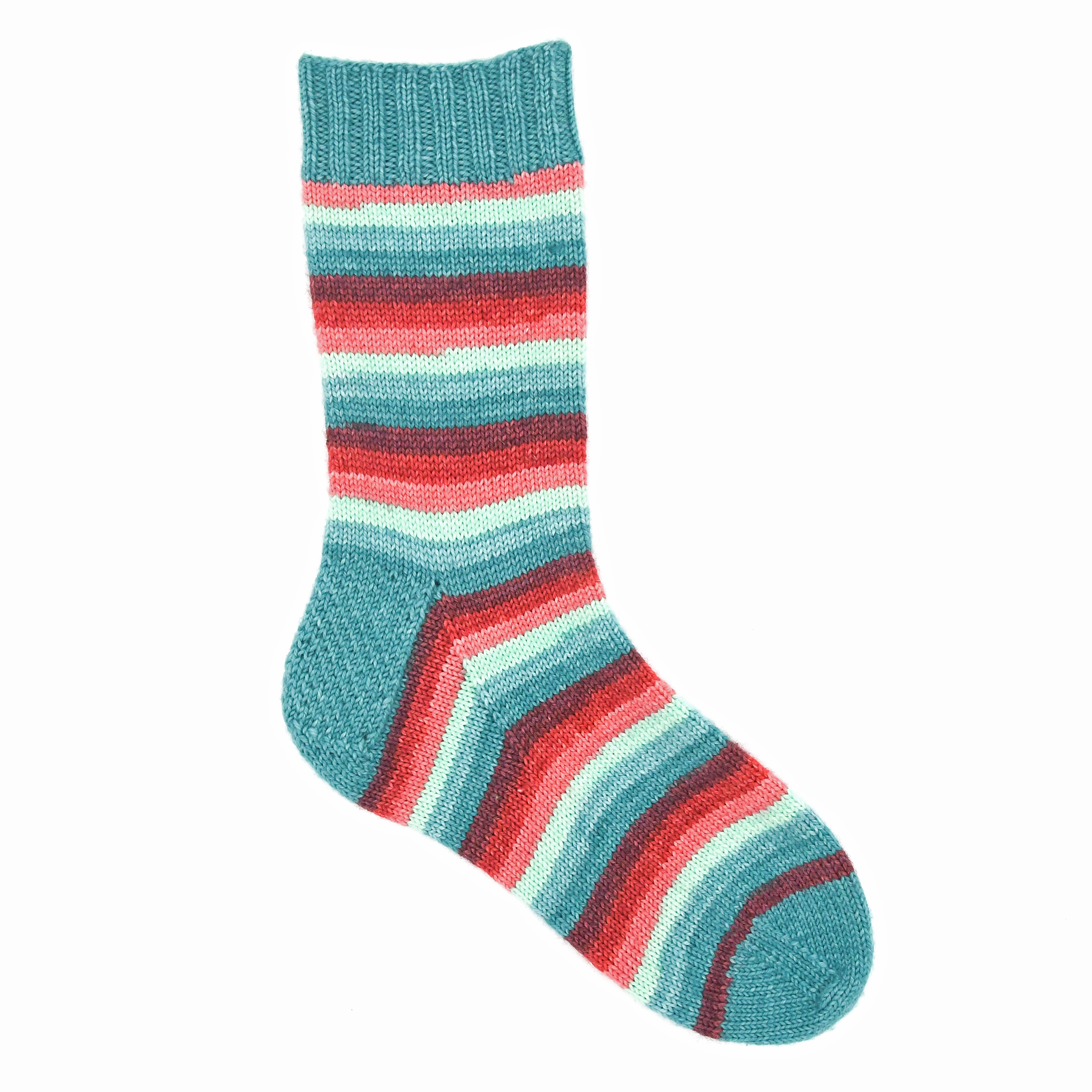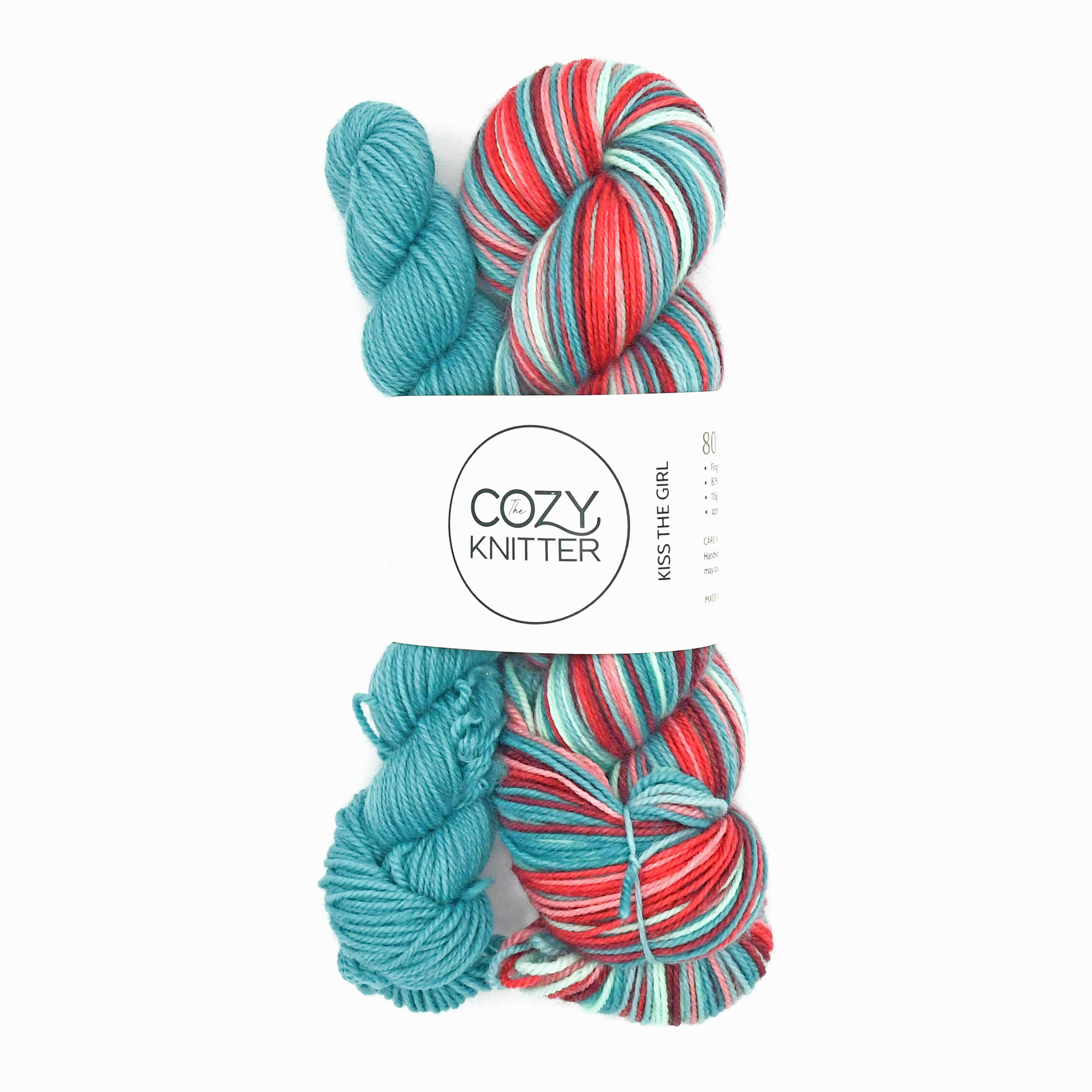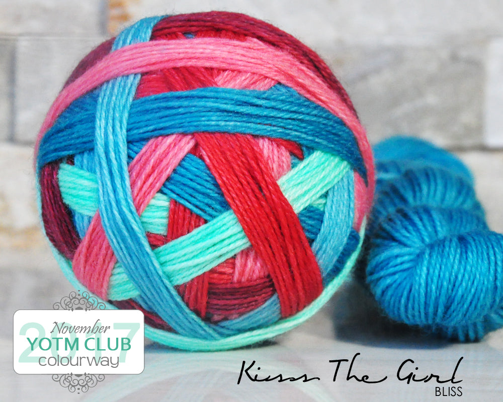 KISS THE GIRL is the November 2017 YOTM club colourway. 1 skein of 6-self-striping sock yarn each stripe is approximately 3-4 rows depending on gauge on a 64 st. sock.