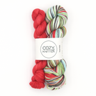 You will also receive a coordinating mini-skein for your toes/heels/cuffs in red.