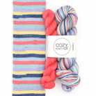 CHEERFUL is the January 2019 YOTM club colourway. 1 skein of 6 stripe self-striping sock yarn each stripe is approximately 3-4 rows depending on gauge on a 64 st. sock.