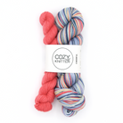 Fingering Sock sets weigh approximately 115g, 85g stripes and a 30g mini-skein