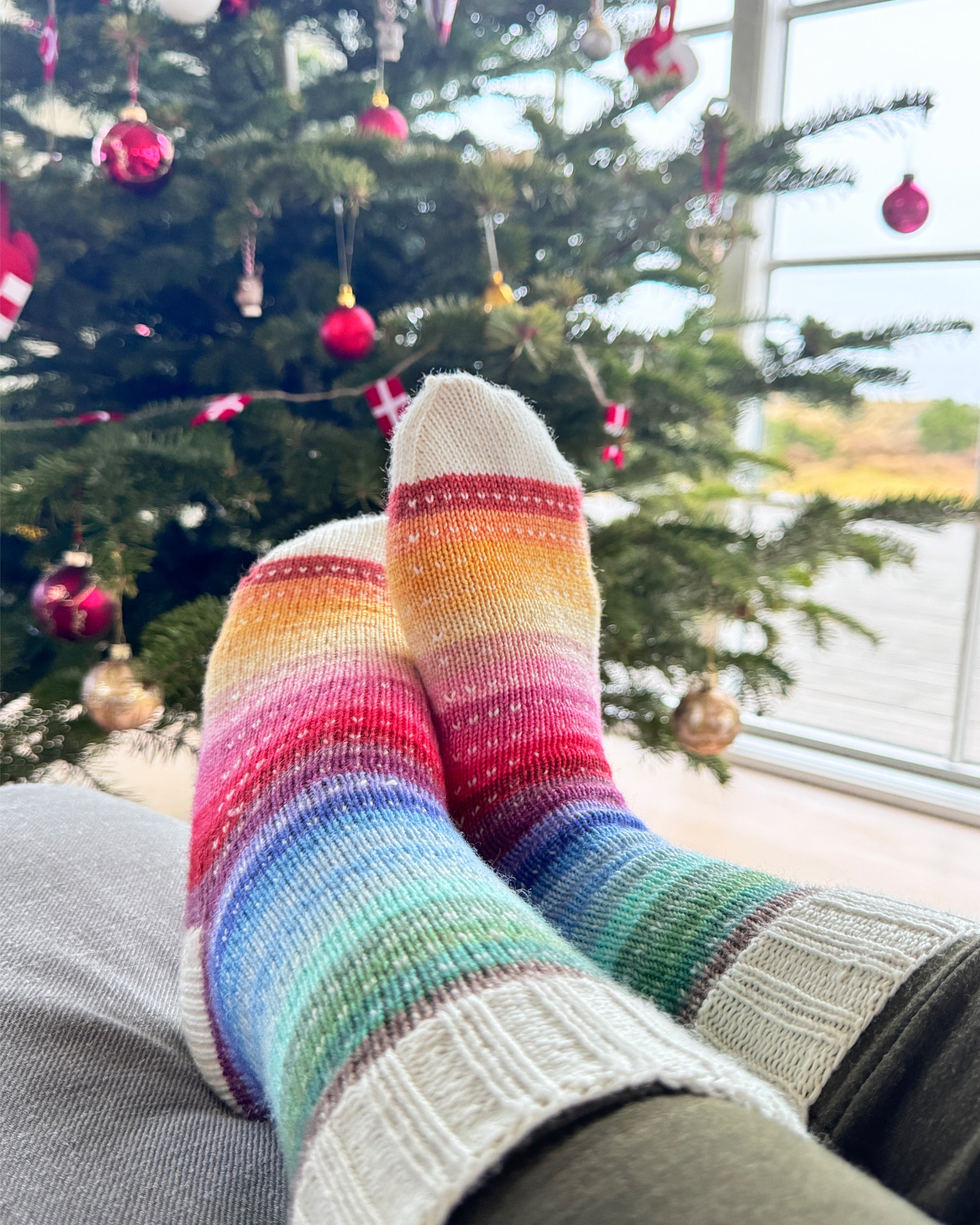 Yarn Base: The Advent Skein is dyed on my Bliss sock base which is 80% superwash merino and 20% nylon and will be approx. 115g. The skein will be split into two even half-skeins each with 2 full repeats of 24 stripes, stripes are approx. 5-6 rows depending on your gauge. To have a finished pair of socks by Christmas Day you may need to knit more than one stripe daily, this depends on your personal gauge and the size you will be knitting.