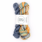 Fingering Sock sets weigh approximately 115g, 85g stripes and a 30g mini-skein