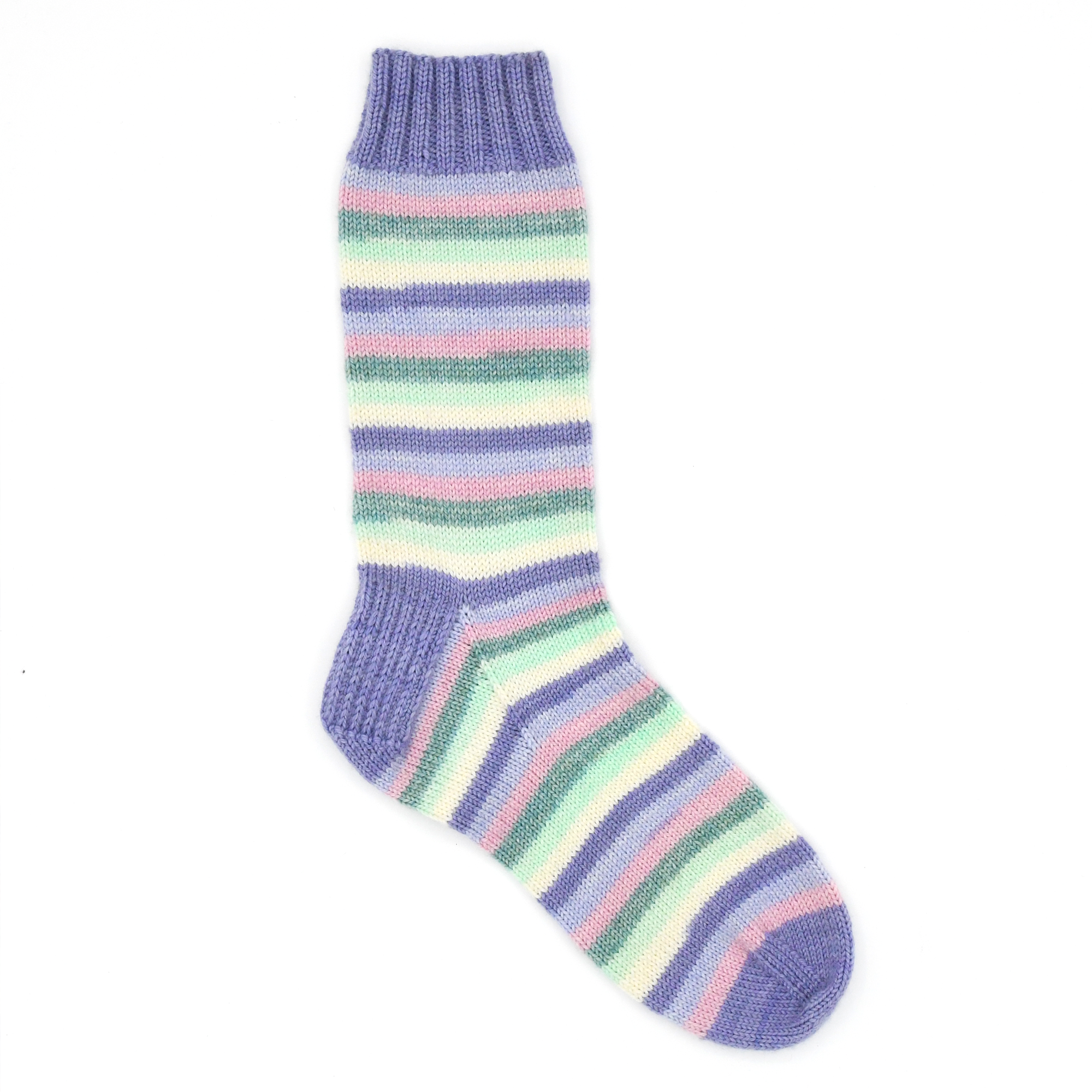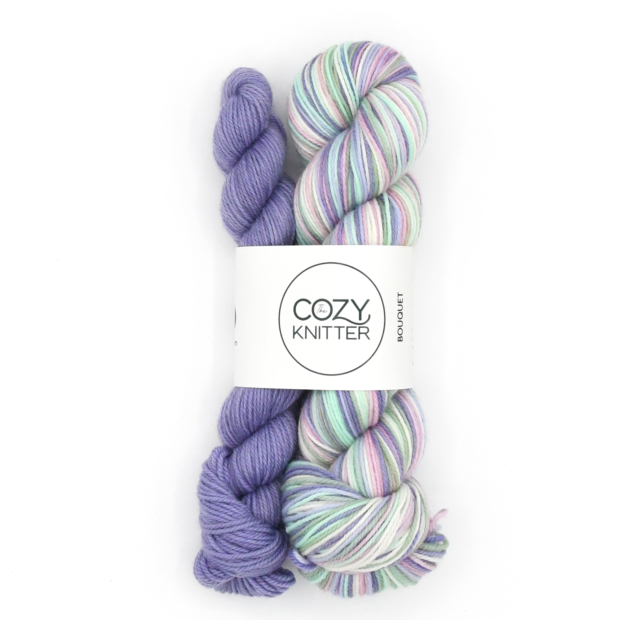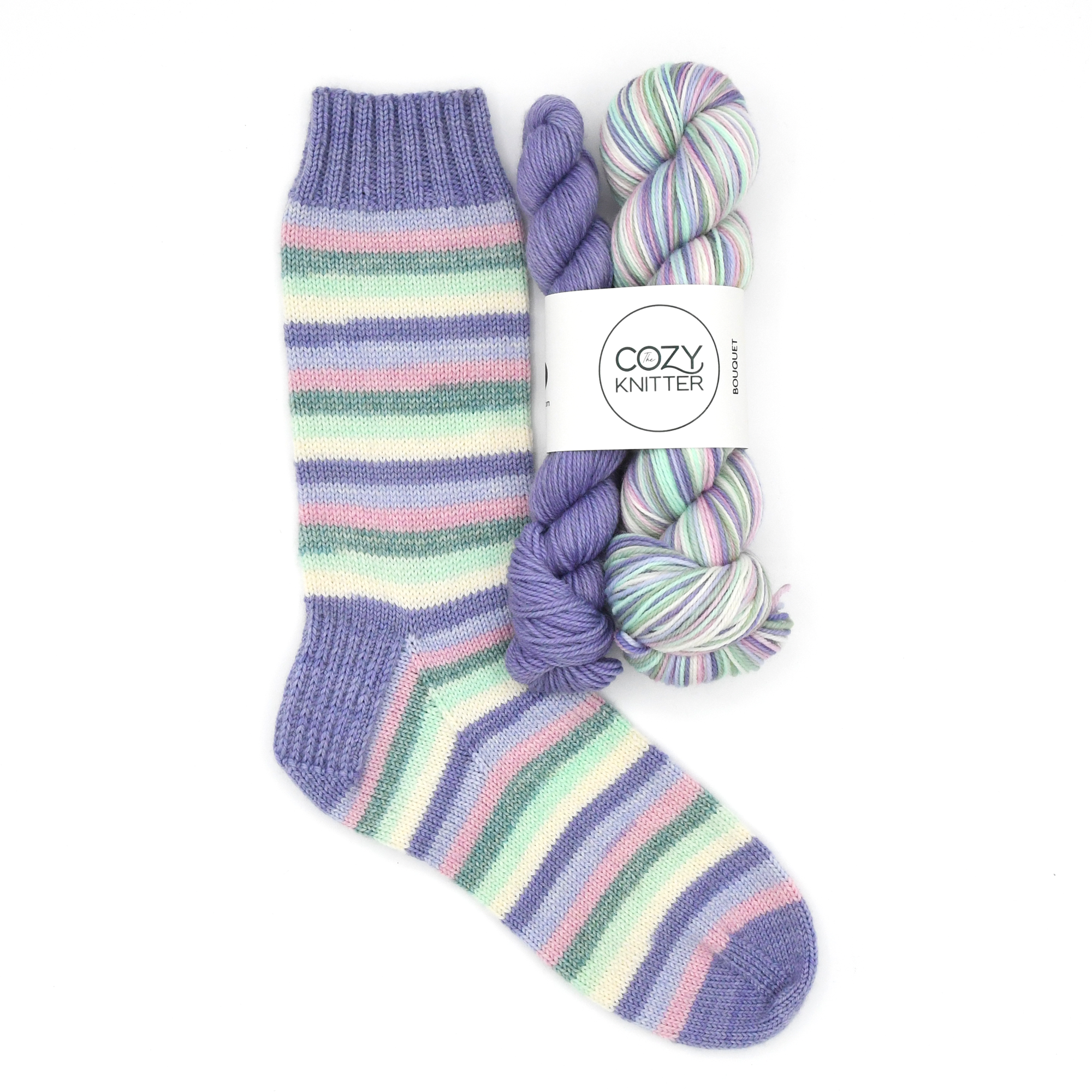 BOUQUET was the March 2018 YOTM club colourway. 1 skein of 6-self-striping sock yarn each stripe is approximately 5-6 rows depending on gauge on a 64 st. sock.