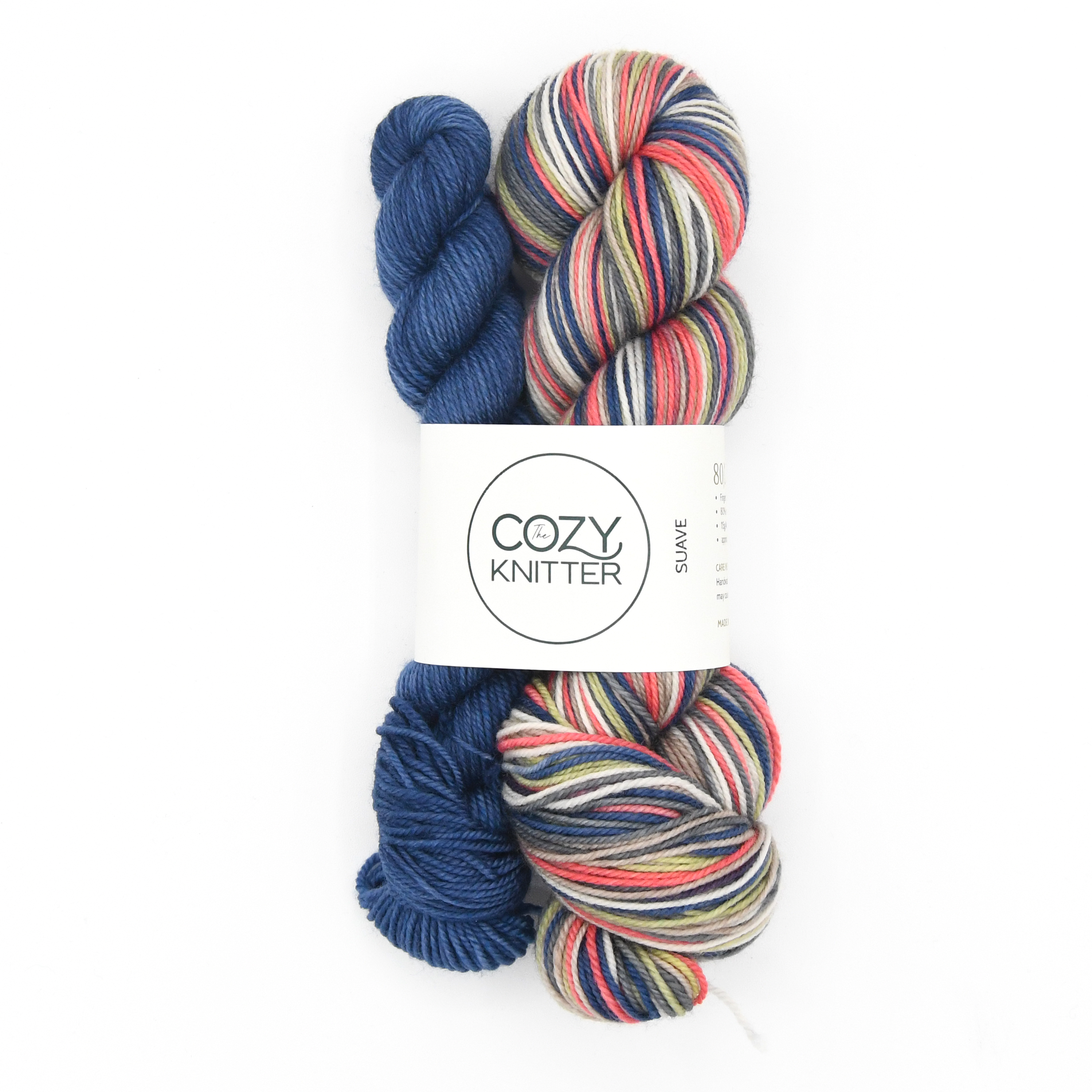 SUAVE is the March 2023 YOTM club colourway. 1 skein of 6 stripe self-striping sock yarn each stripe is approximately 3-4 rows depending on gauge on a 64 st. sock.