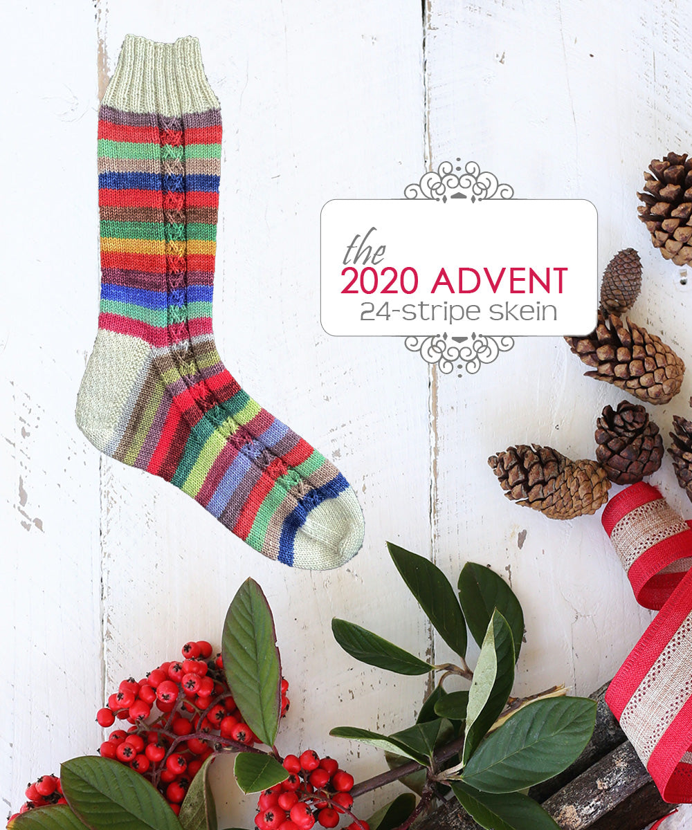 I first came up with the idea of a 24-stripe advent skein in July 2018 as I was preparing my annual Christmas update. At the time I thought it would be fun to offer as an alternative to the traditional mini-skein calendars. Originally I had hoped maybe 25-50 knitters would want to join in. To my surprise this concept was welcomed with open arms by knitters and close to 400 participated in the 24-stripe advent skein KAL in 2018. Last year in 2019 we were close to 900 participants which completely blew me away. I am so glad that this is becoming a tradition for so many of you and I cannot wait for you to see this years version.
