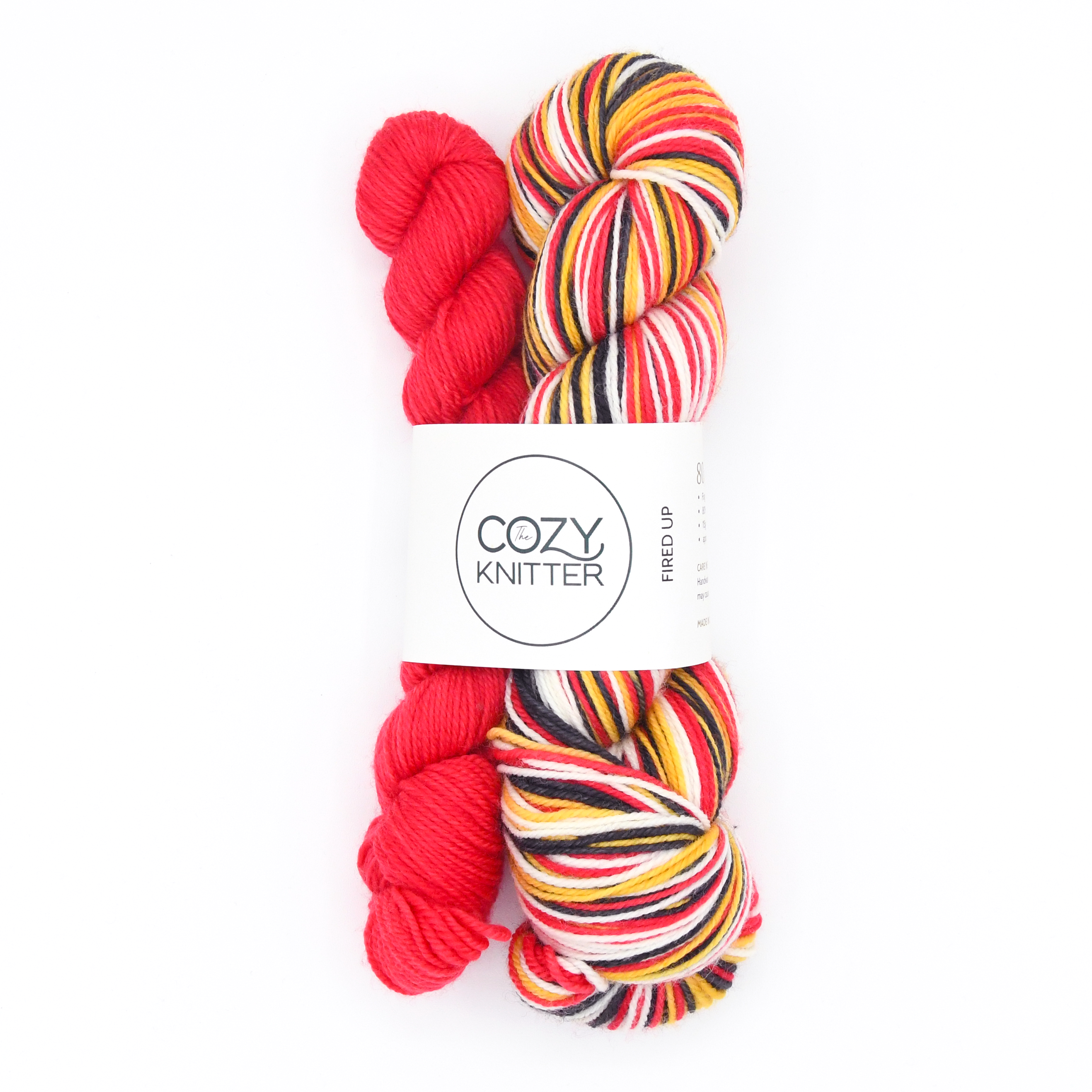 When I first dyed this colourway I posed a name suggestion post to Instagram and many responded that it reminded them of the Maryland state flag, racing, fire and rescue, deck of cards, camp fires amongst other things. I thought the name FIRED UP would relate to many of these suggestions.