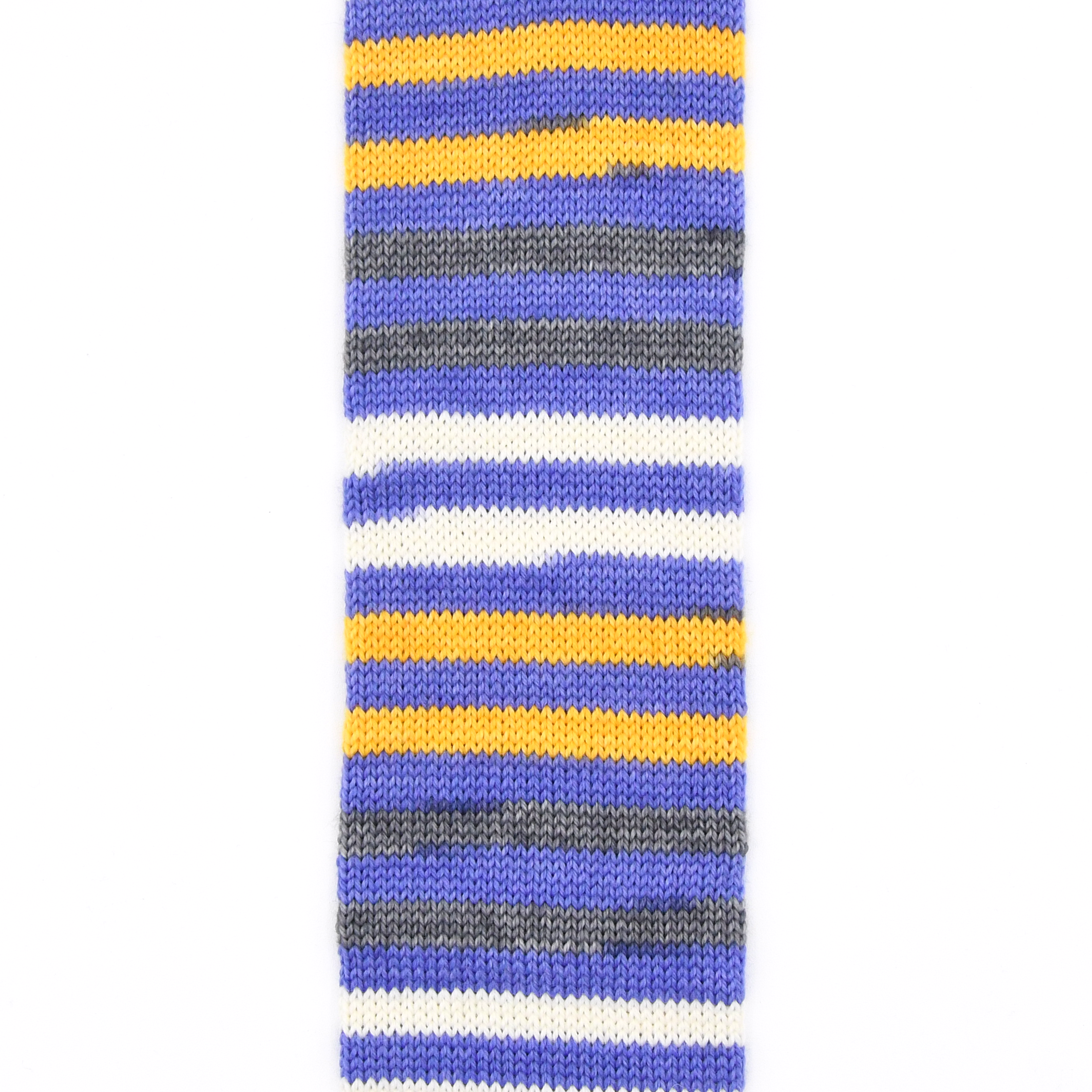 GEAUX is a new 2024 colourway, it debuted at Knit City Toronto in April. This 12 stripe colourway is part of our sports collection and is inspired by the Louisiana State University. Each stripe is approximately 4 rows depending on gauge on a 64 st. sock.