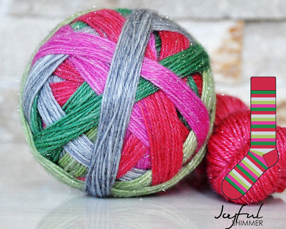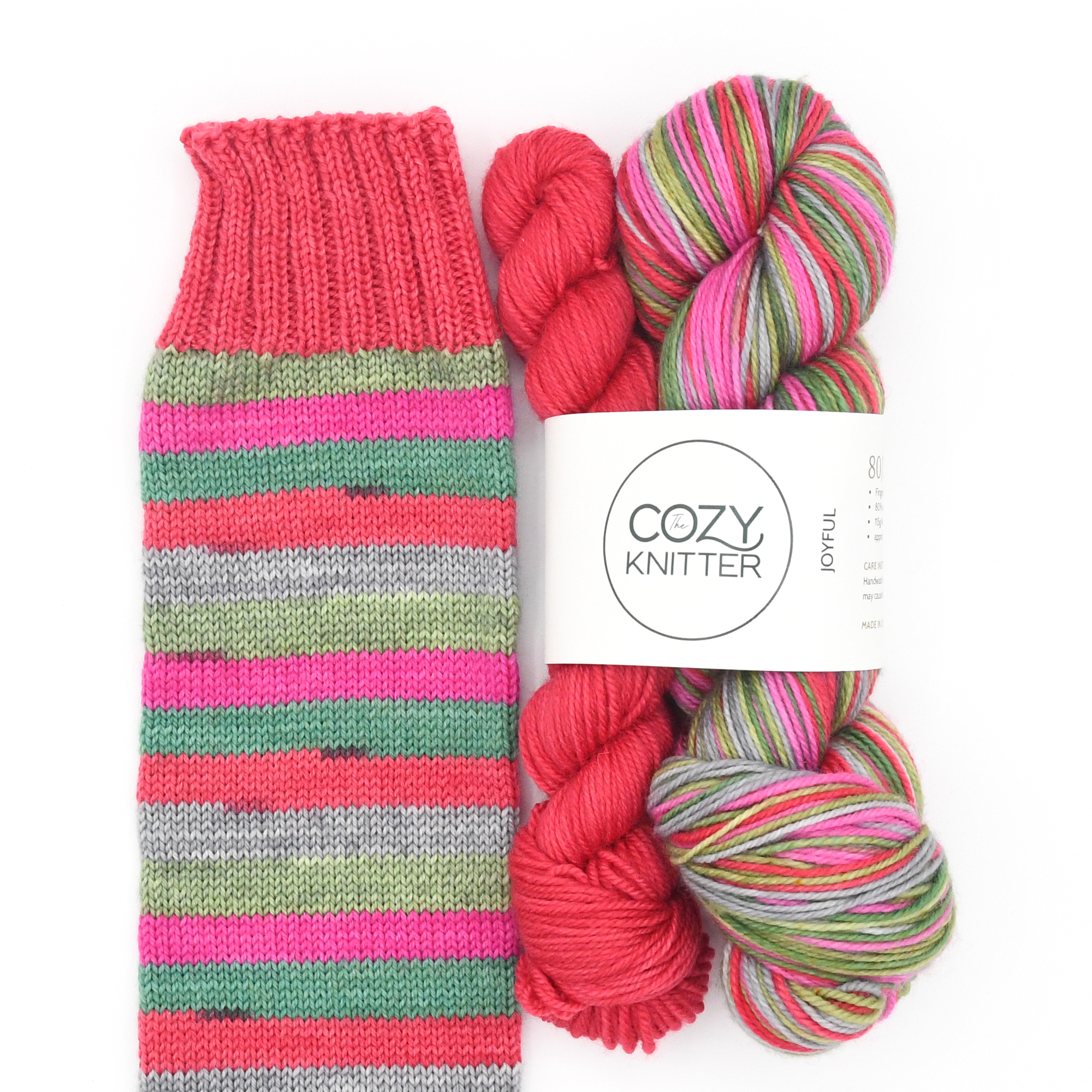 JOYFUL was first released as part of a kit and the colours chosen match those in the project bag it was sold with. This is a less traditional Christmas colourway.
