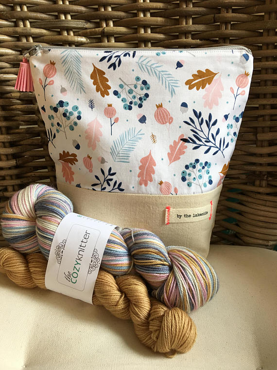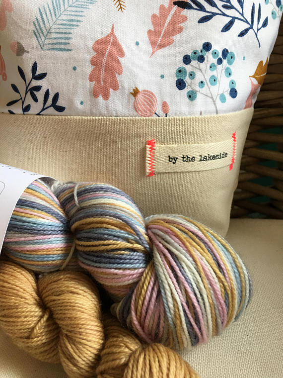 Small Project Bag: handmade with 100% Quilter's Cotton, Cotton Canvas and fully lined. It includes a light layer of fusing for some stability, but is still soft enough to easily fold over and use as a project basket for your knitting.