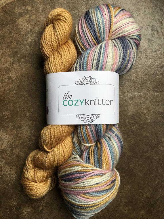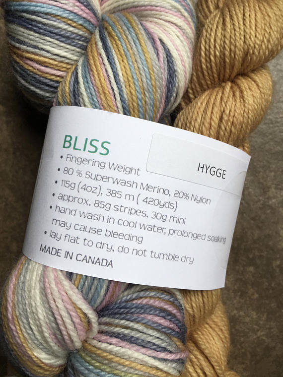 The Cozy Knitter Self striping Yarn in the colourway HYGGE (Bliss Base) - Fingering Weight, 80% Superwash Merino / 20% Nylon, 115g (4oz) / 420yards/ 385m including a complimenting mini skein in the same base