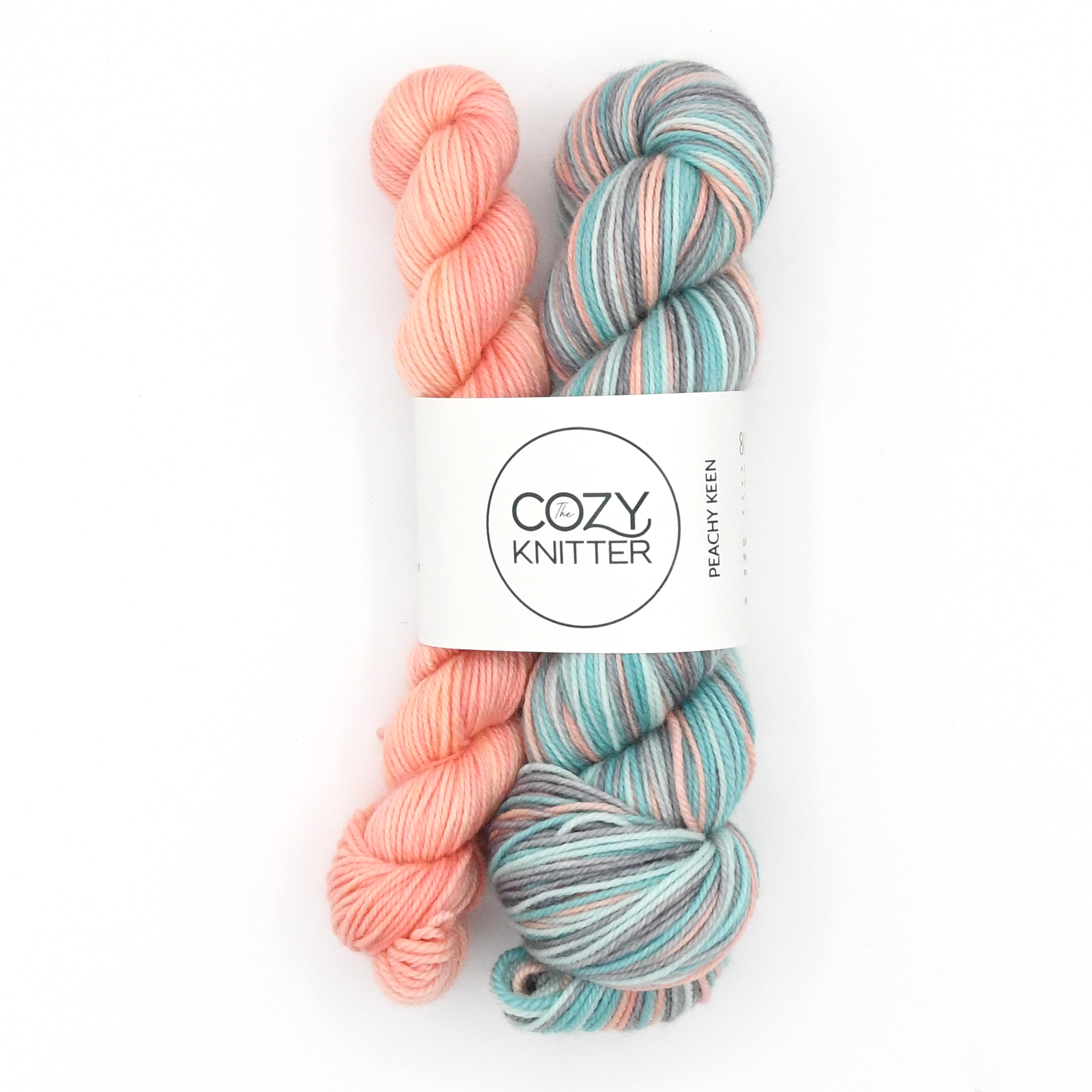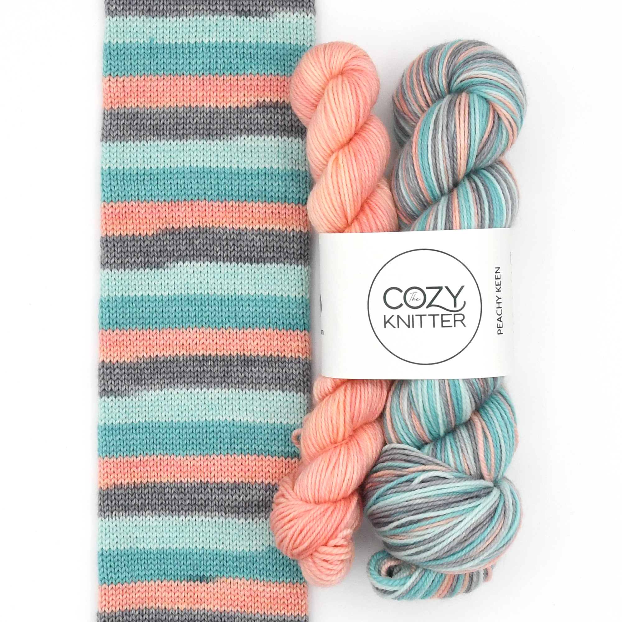 You will also receive a coordinating mini-skein for your toes/heels/cuffs in peach.