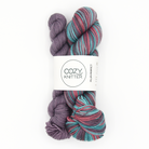 Fingering Sock sets weigh approximately 115g, 85g stripes and a 30g mini-skein