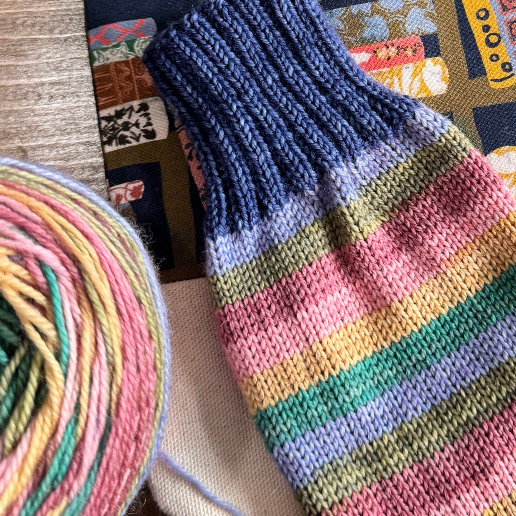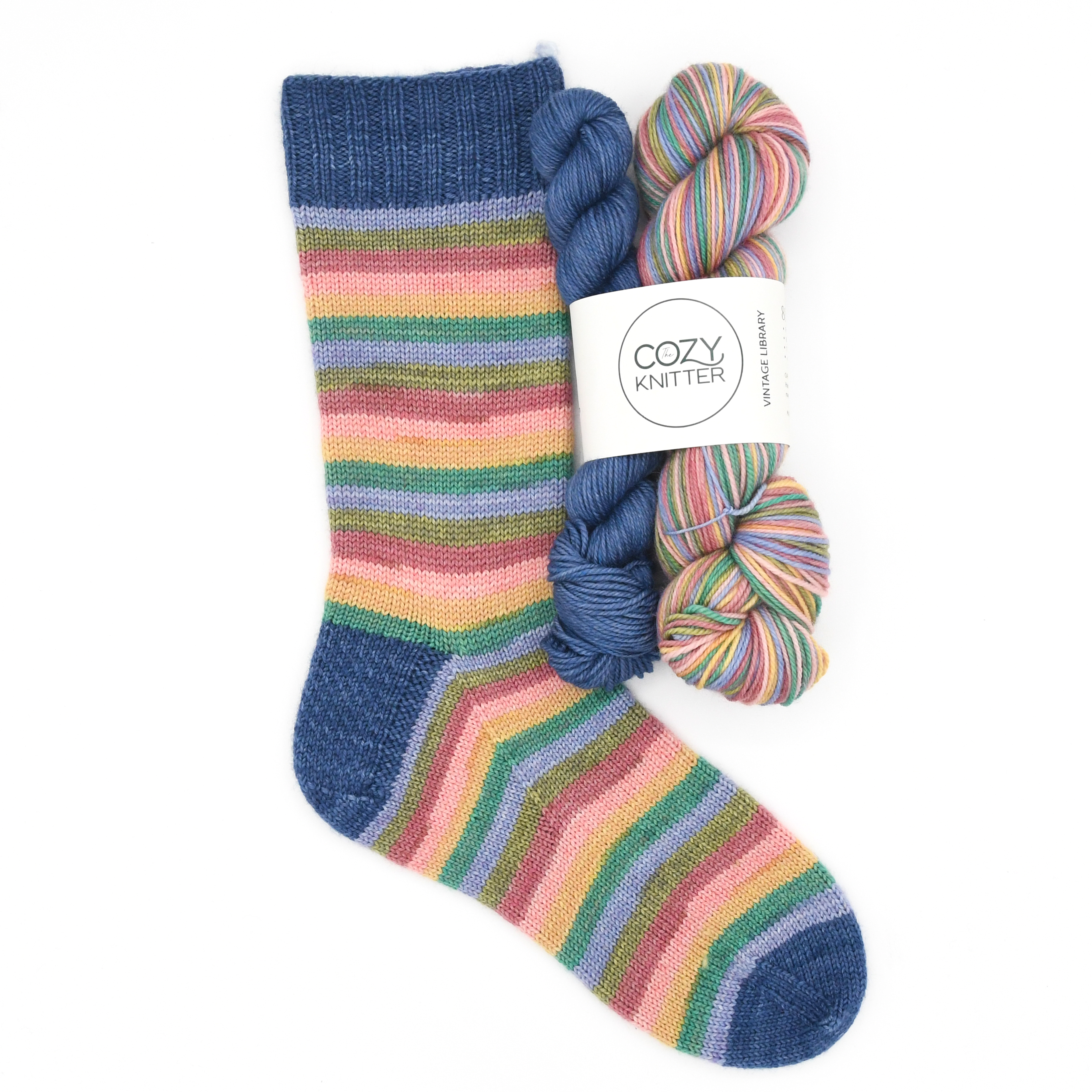 You will also receive a coordinating mini-skein for your toes/heels/cuffs in navy.